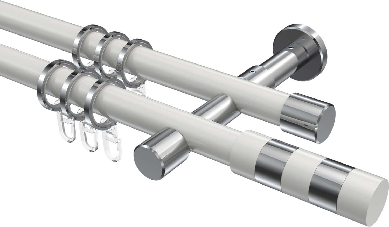 Gardinenstangen aus Metall in 20 mm Ø, 2-läufig, Modell PRESTIGE - Mavell Weiß / Chrom