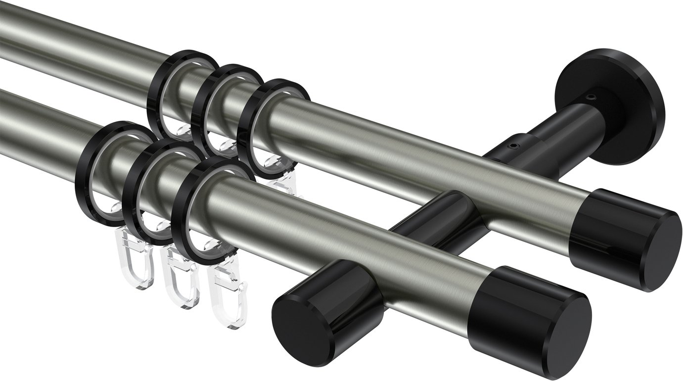 Gardinenstangen aus Metall in 20 mm Ø, 2-läufig, Modell PRESTIGE - Santo Edelstahl-Optik / Schwarz