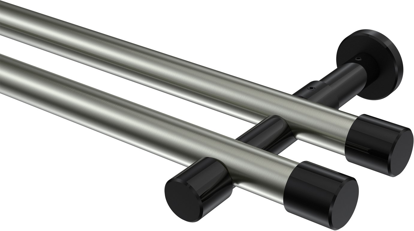 Informationen zu Gardinenstange Metall 20 mm Ø 2-läufig PRESTIGE - Santo Edelstahl-Optik / Schwarz (ohne Ringe):