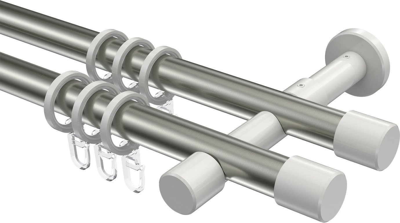 Gardinenstangen aus Metall in 20 mm Ø, 2-läufig, Modell PRESTIGE - Santo Edelstahl-Optik / Weiß