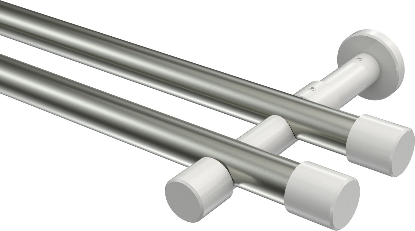 Informationen zu Gardinenstange Metall 20 mm Ø 2-läufig PRESTIGE - Santo Edelstahl-Optik / Weiß (ohne Ringe):