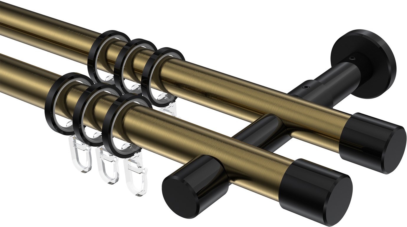 Gardinenstangen aus Metall in 20 mm Ø, 2-läufig, Modell PRESTIGE - Santo Messing Antik / Schwarz