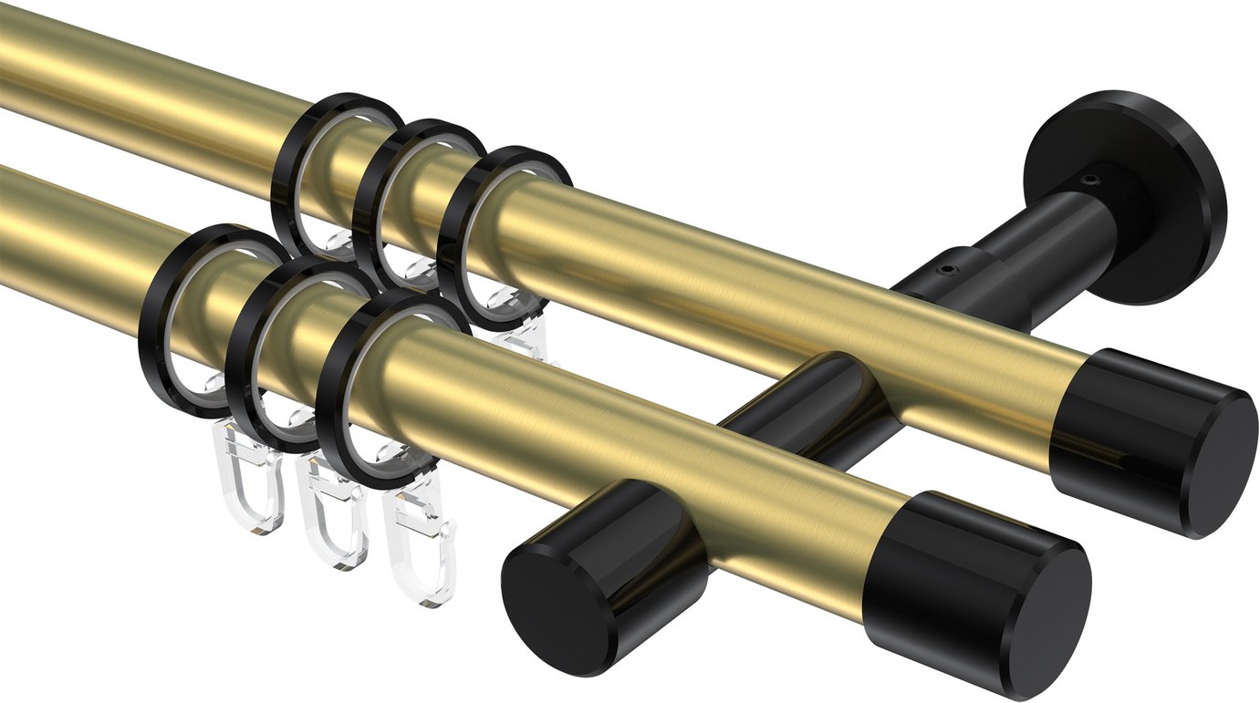 Gardinenstangen aus Metall in 20 mm Ø, 2-läufig, Modell PRESTIGE - Santo Messing-Optik / Schwarz