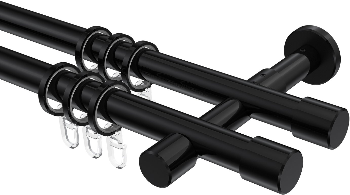Gardinenstangen aus Metall in 20 mm Ø, 2-läufig, Modell PRESTIGE - Santo Schwarz