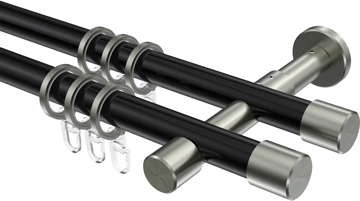 Informationen zu Gardinenstange Metall 20 mm Ø 2-läufig PRESTIGE - Santo Schwarz / Edelstahl-Optik: