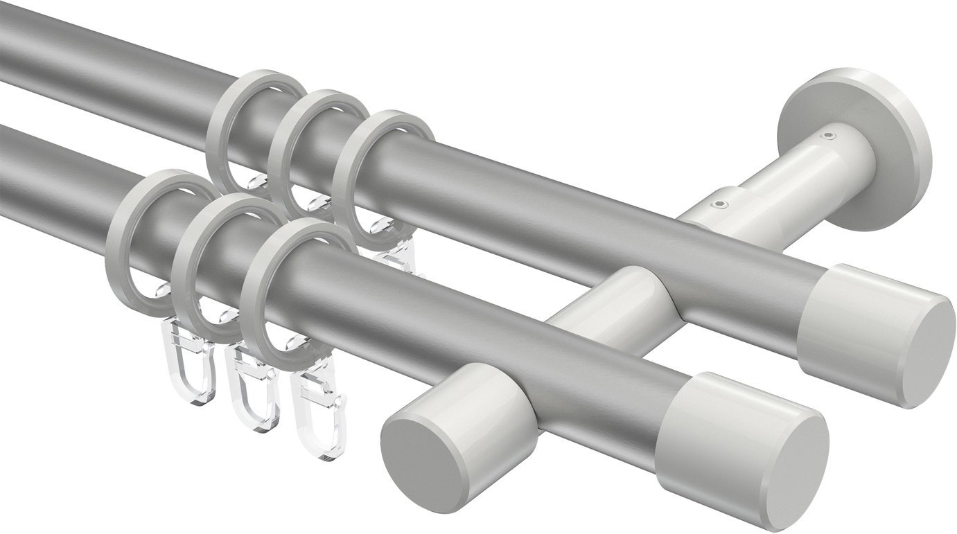 Gardinenstangen aus Metall in 20 mm Ø, 2-läufig, Modell PRESTIGE - Santo Silbergrau / Weiß