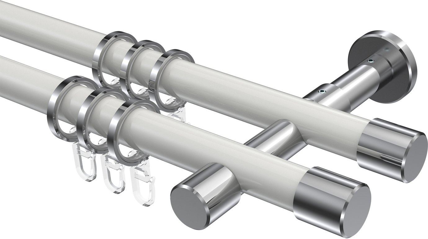 Gardinenstangen aus Metall in 20 mm Ø, 2-läufig, Modell PRESTIGE - Santo Weiß / Chrom