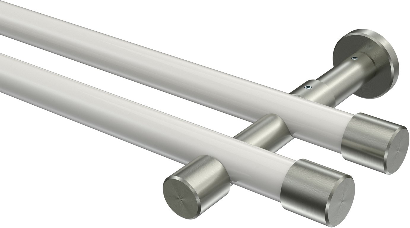 Informationen zu Gardinenstange Metall 20 mm Ø 2-läufig PRESTIGE - Santo Weiß / Edelstahl-Optik (ohne Ringe):