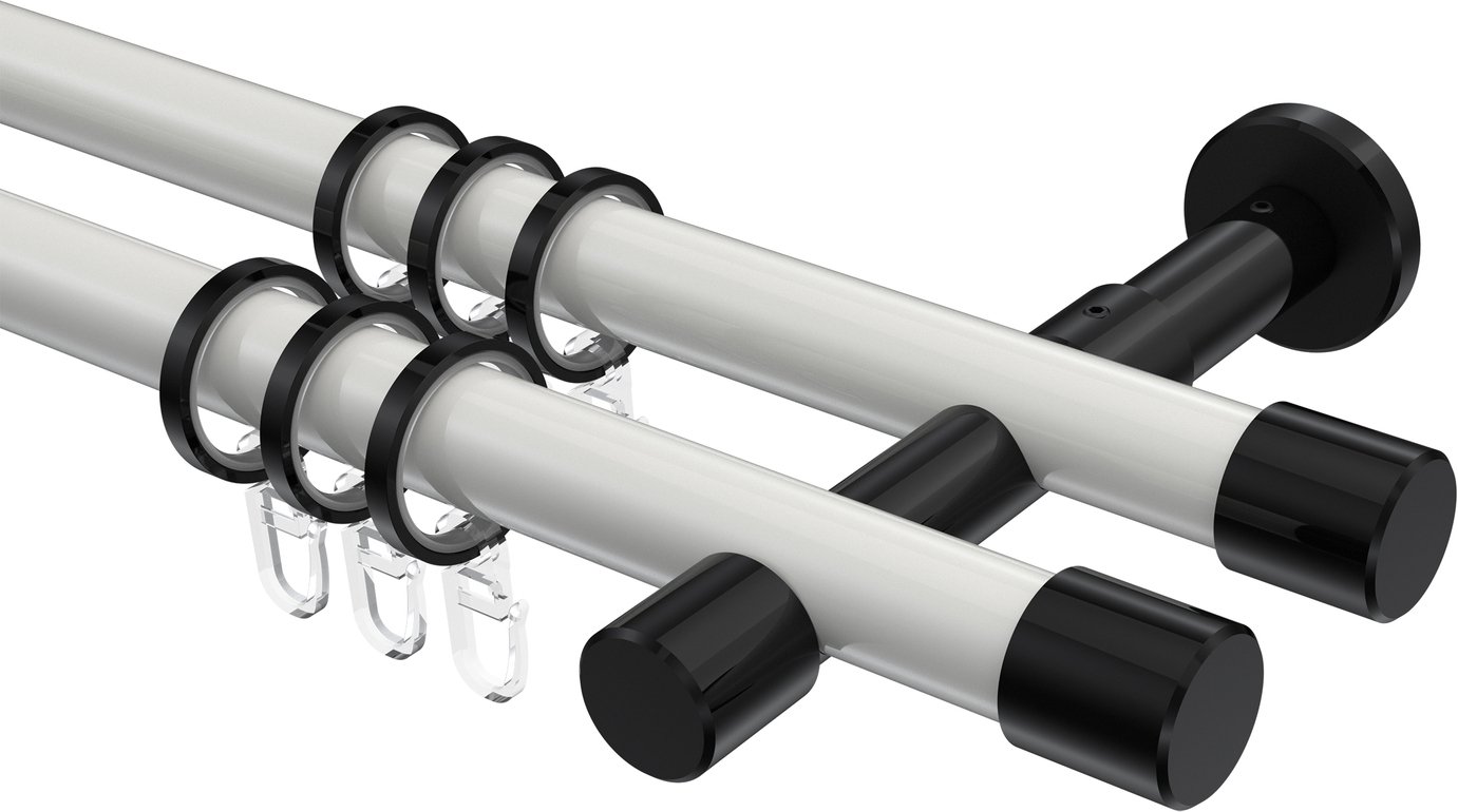 Informationen zu Gardinenstange Metall 20 mm Ø 2-läufig PRESTIGE - Santo Weiß / Schwarz: