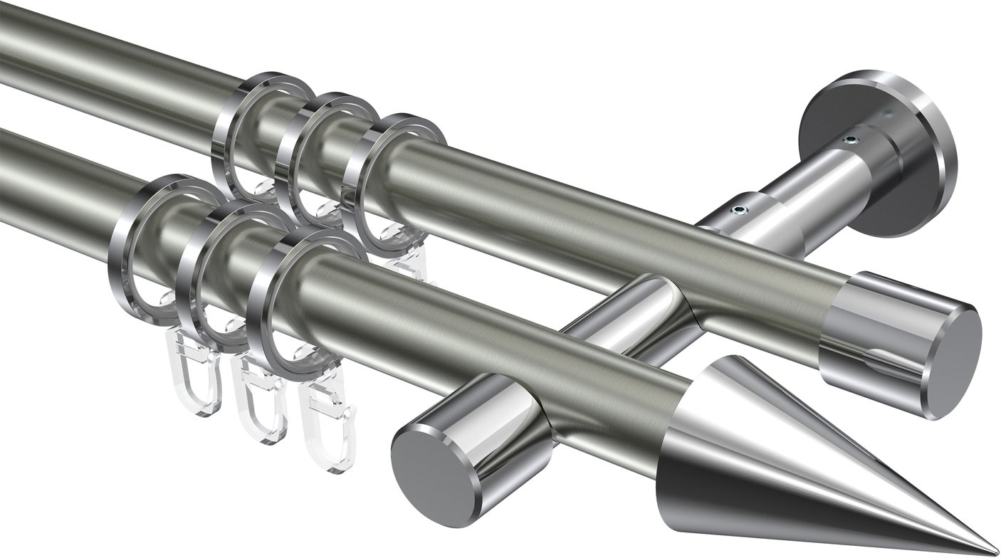 Informationen zu Gardinenstange Metall 20 mm Ø 2-läufig PRESTIGE - Savio Edelstahl-Optik / Chrom: