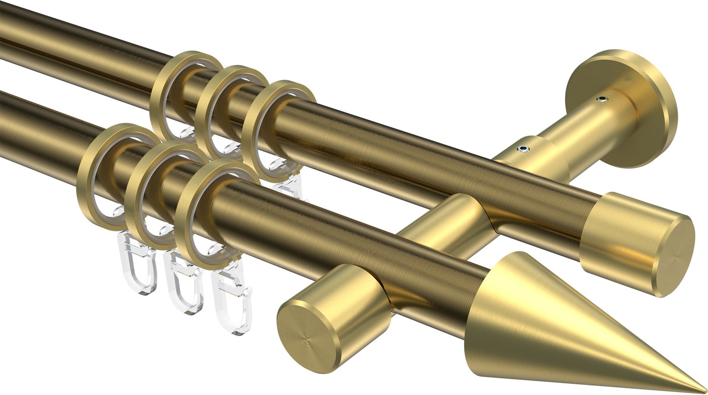 Gardinenstangen aus Metall in 20 mm Ø, 2-läufig, Modell PRESTIGE - Savio Messing Antik / Messing-Optik