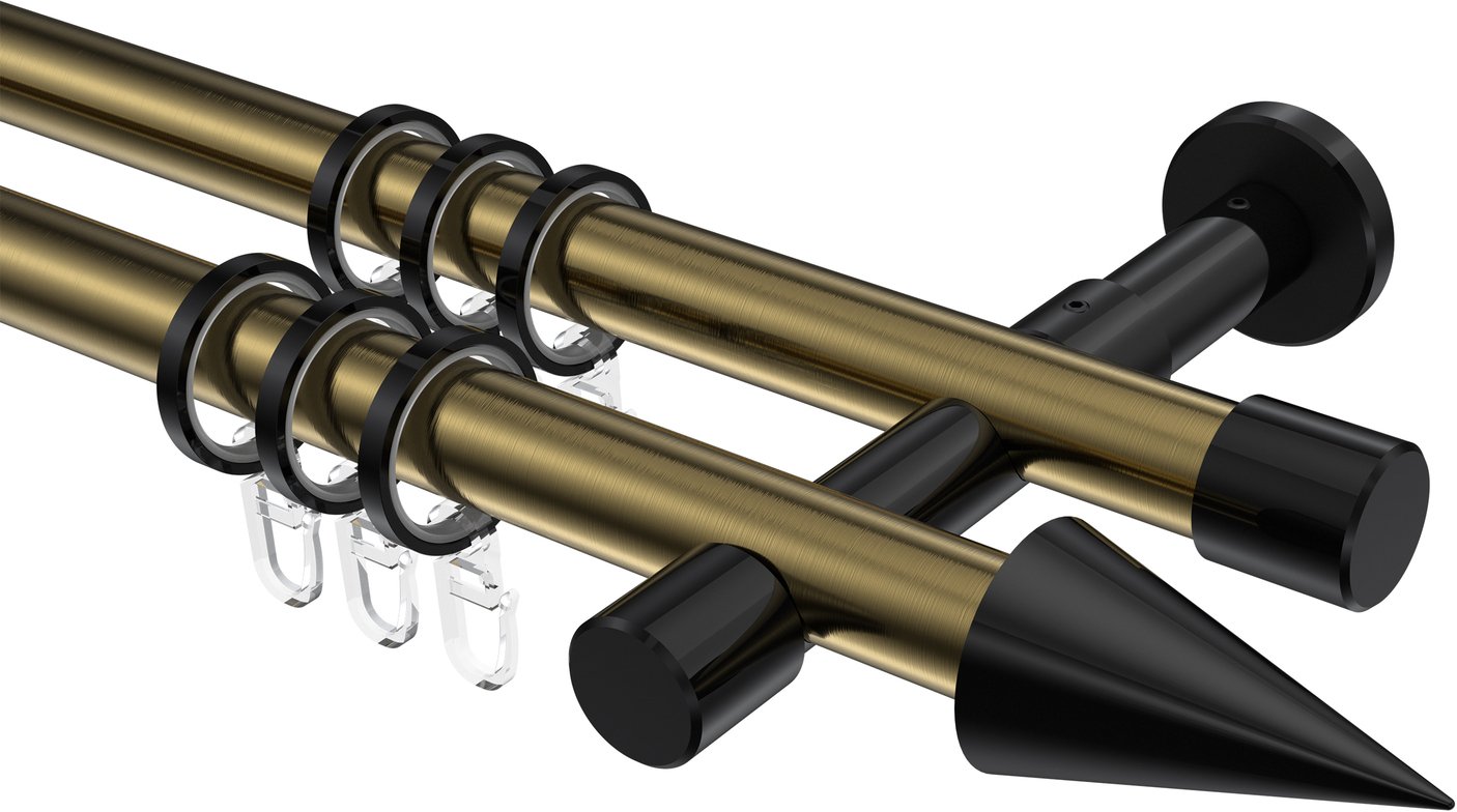 Informationen zu Gardinenstange Metall 20 mm Ø 2-läufig PRESTIGE - Savio Messing Antik / Schwarz: