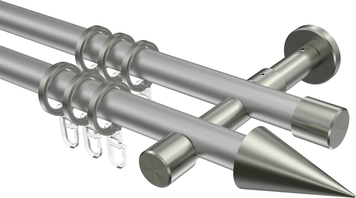 Gardinenstangen aus Metall in 20 mm Ø, 2-läufig, Modell PRESTIGE - Savio Silbergrau / Edelstahl-Optik