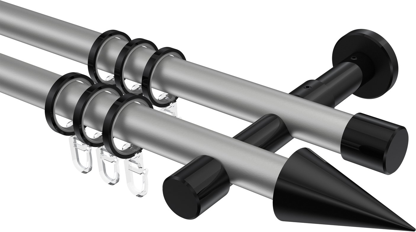 Informationen zu Gardinenstange Metall 20 mm Ø 2-läufig PRESTIGE - Savio Silbergrau / Schwarz: