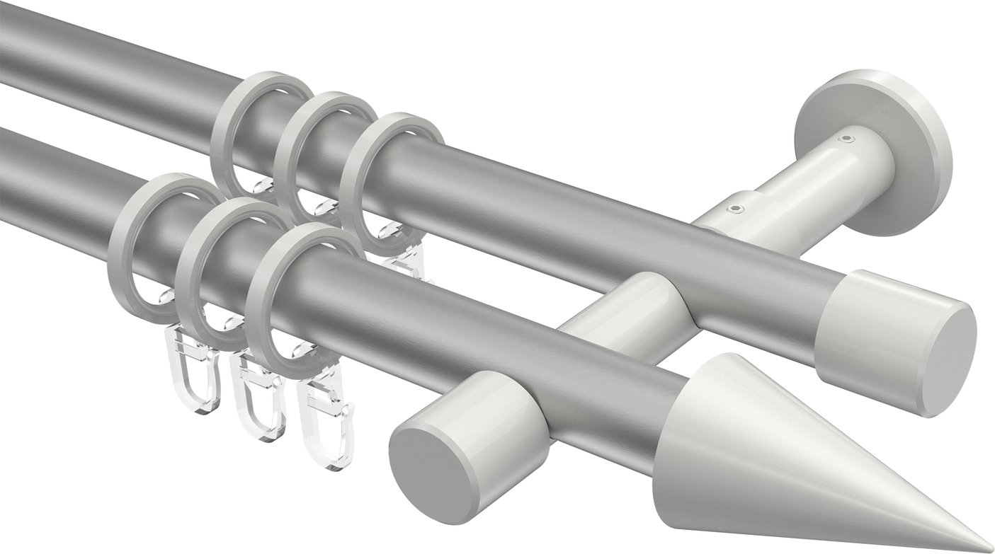 Informationen zu Gardinenstange Metall 20 mm Ø 2-läufig PRESTIGE - Savio Silbergrau / Weiß: