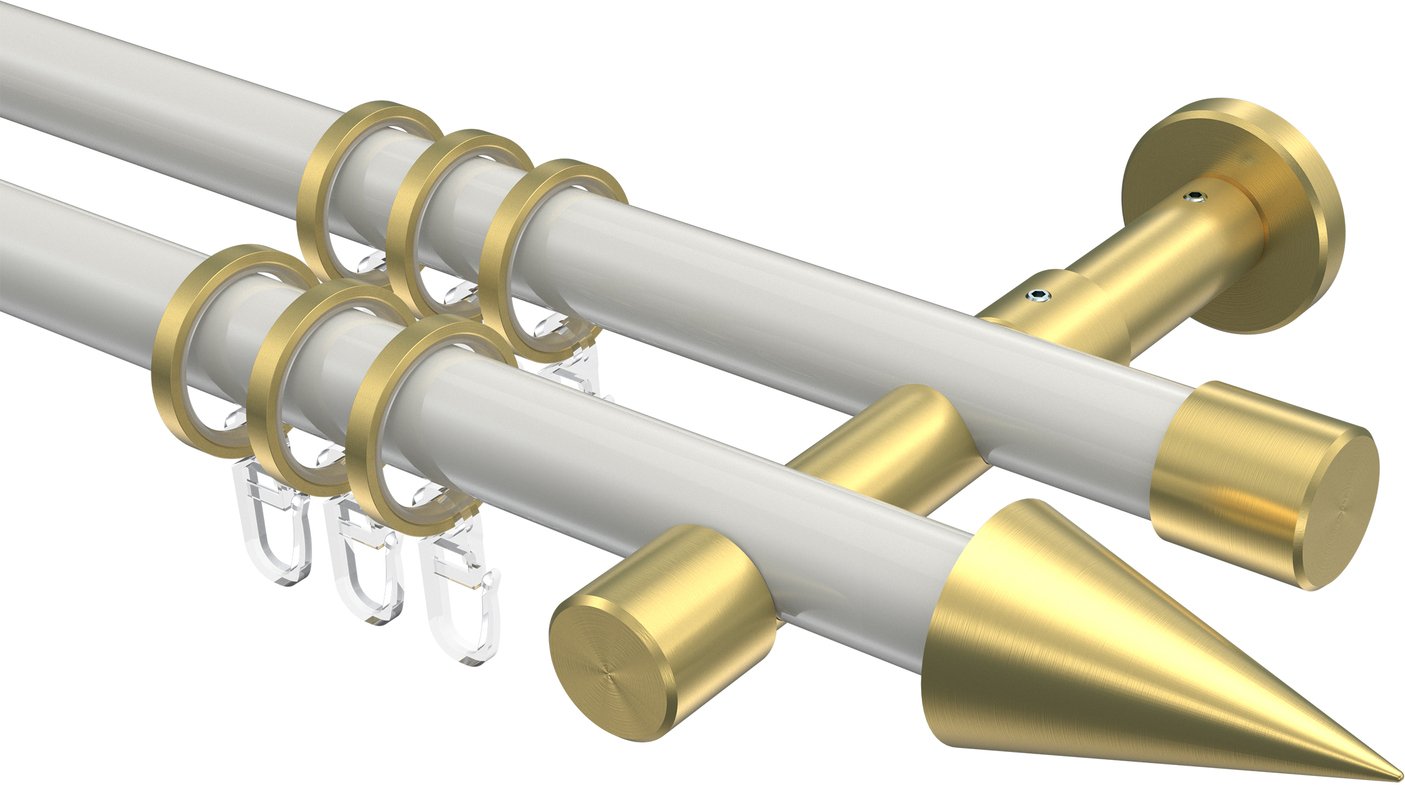 Gardinenstangen aus Metall in 20 mm Ø, 2-läufig, Modell PRESTIGE - Savio Weiß / Messing-Optik