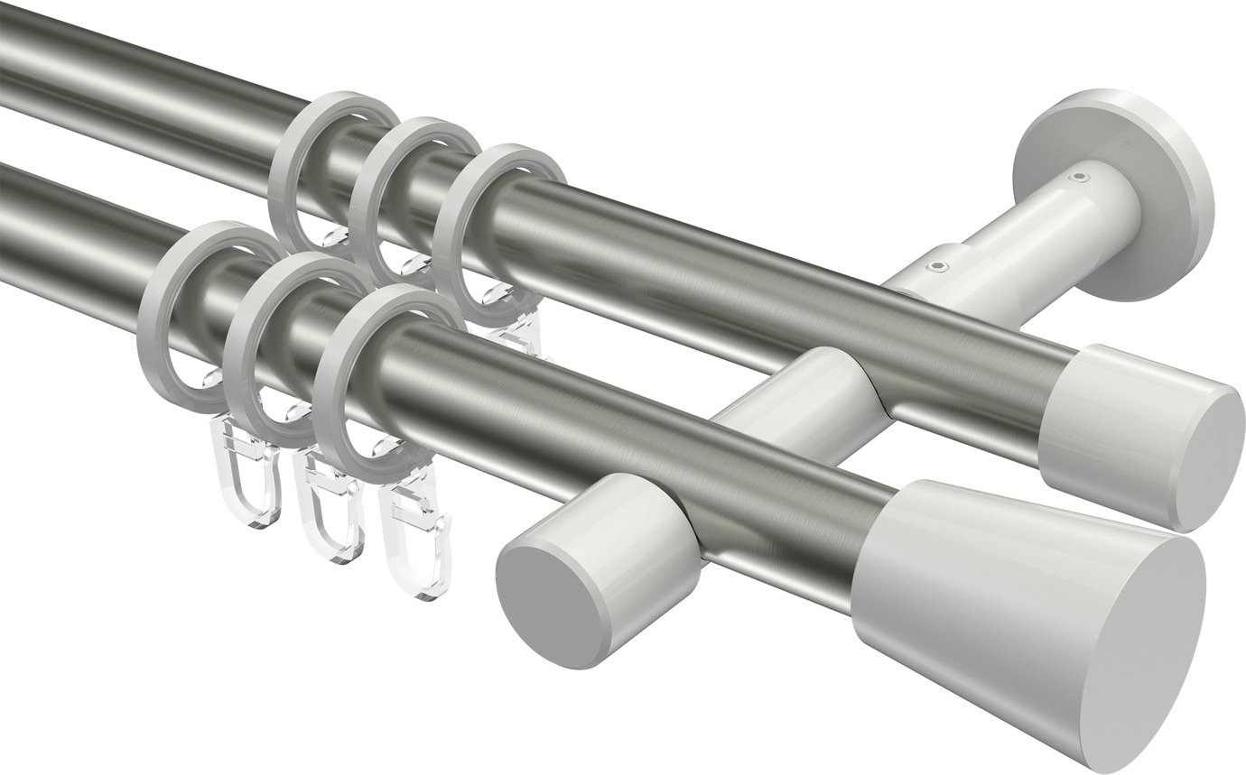Informationen zu Gardinenstange Metall 20 mm Ø 2-läufig PRESTIGE - Sitra Edelstahl-Optik / Weiß: