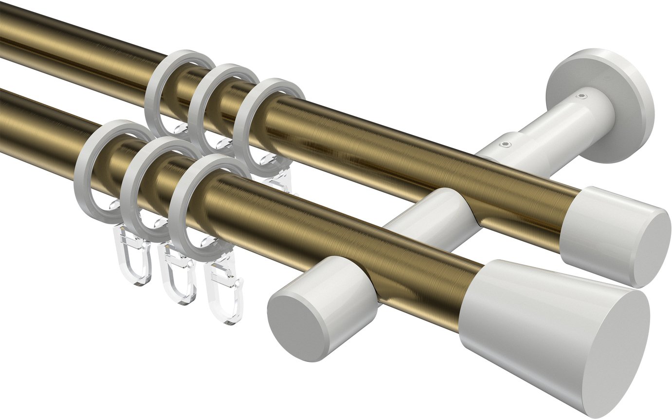 Gardinenstangen aus Metall in 20 mm Ø, 2-läufig, Modell PRESTIGE - Sitra Messing Antik / Weiß