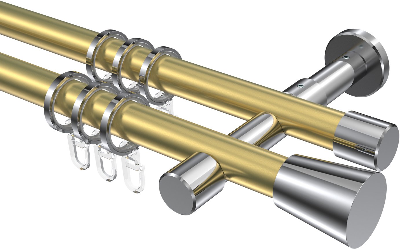 Gardinenstangen aus Metall in 20 mm Ø, 2-läufig, Modell PRESTIGE - Sitra Messing-Optik / Chrom