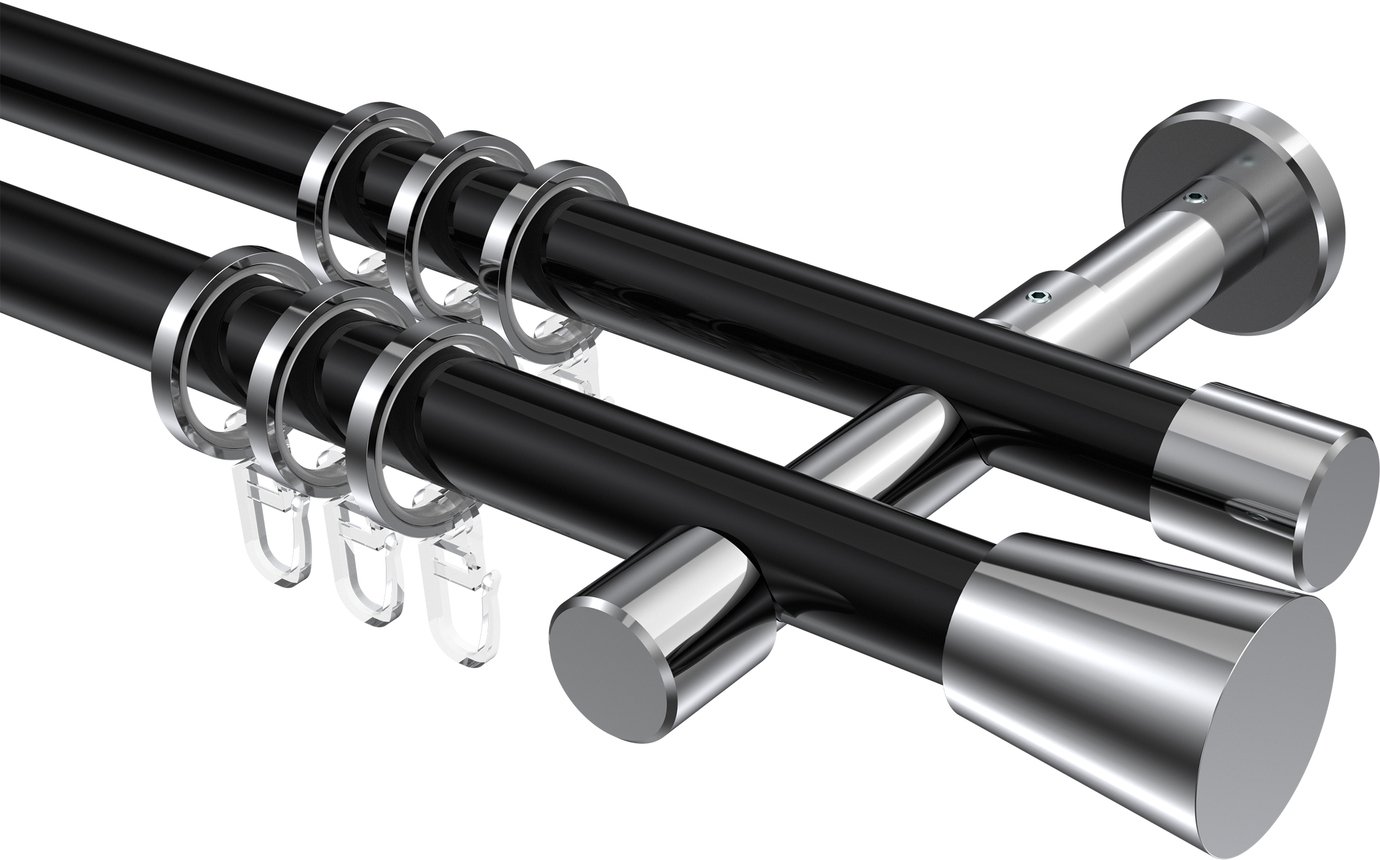 Gardinenstangen aus Metall in 20 mm Ø, 2-läufig, Modell PRESTIGE - Sitra Schwarz / Chrom