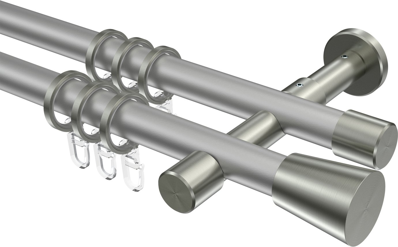 Informationen zu Gardinenstange Metall 20 mm Ø 2-läufig PRESTIGE - Sitra Silbergrau / Edelstahl-Optik:
