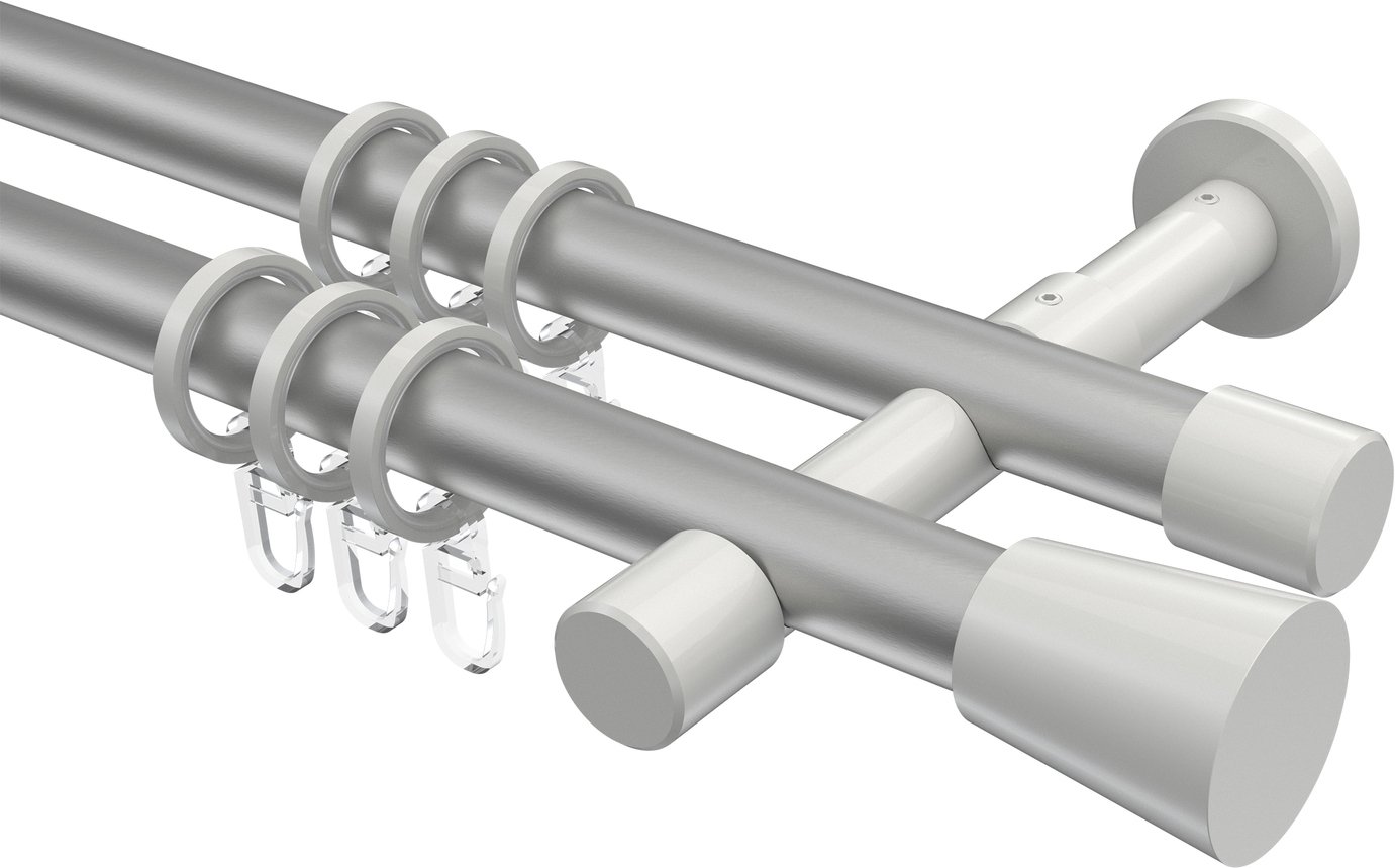 Gardinenstangen aus Metall in 20 mm Ø, 2-läufig, Modell PRESTIGE - Sitra Silbergrau / Weiß