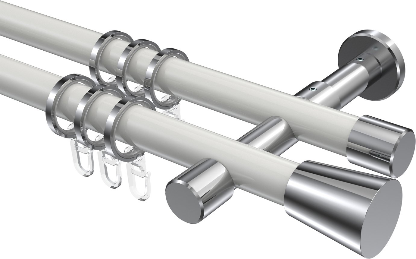 Gardinenstangen aus Metall in 20 mm Ø, 2-läufig, Modell PRESTIGE - Sitra Weiß / Chrom