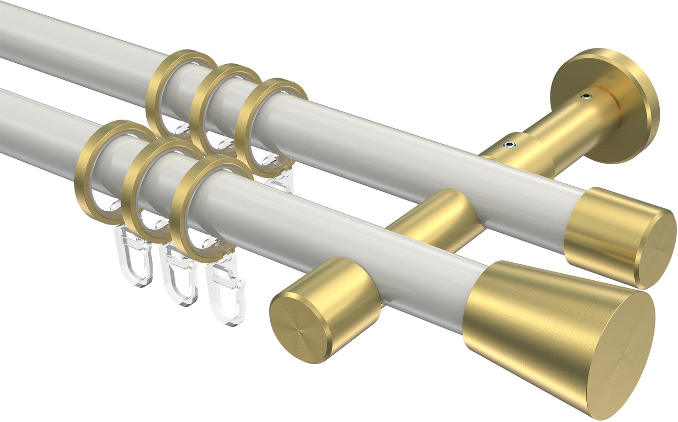 Gardinenstangen aus Metall in 20 mm Ø, 2-läufig, Modell PRESTIGE - Sitra Weiß / Messing-Optik