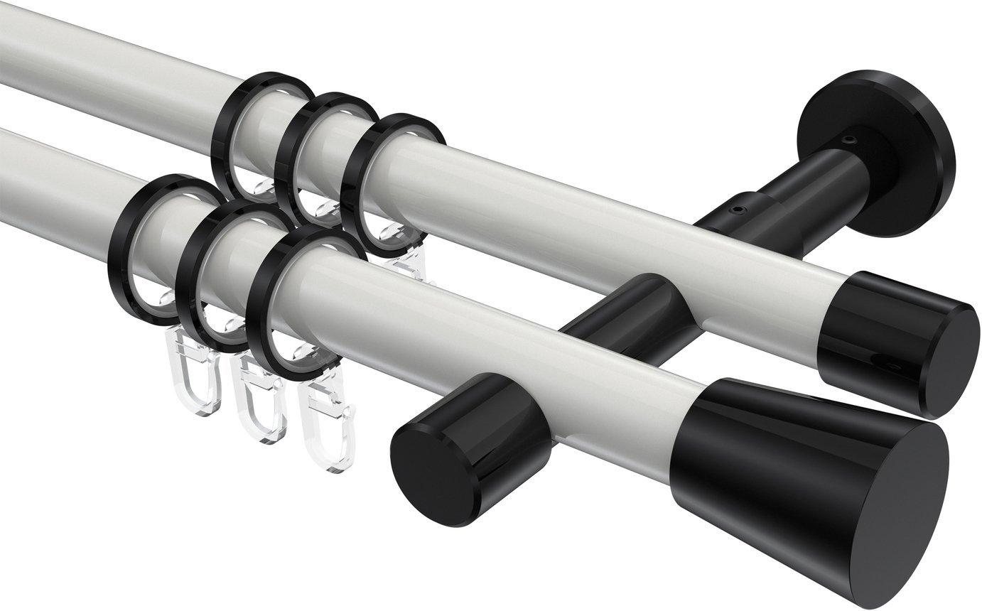 Gardinenstangen aus Metall in 20 mm Ø, 2-läufig, Modell PRESTIGE - Sitra Weiß / Schwarz