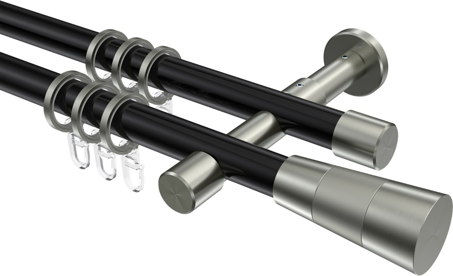 Informationen zu Gardinenstange Metall 20 mm Ø 2-läufig PRESTIGE - Tanara Schwarz / Edelstahl-Optik: