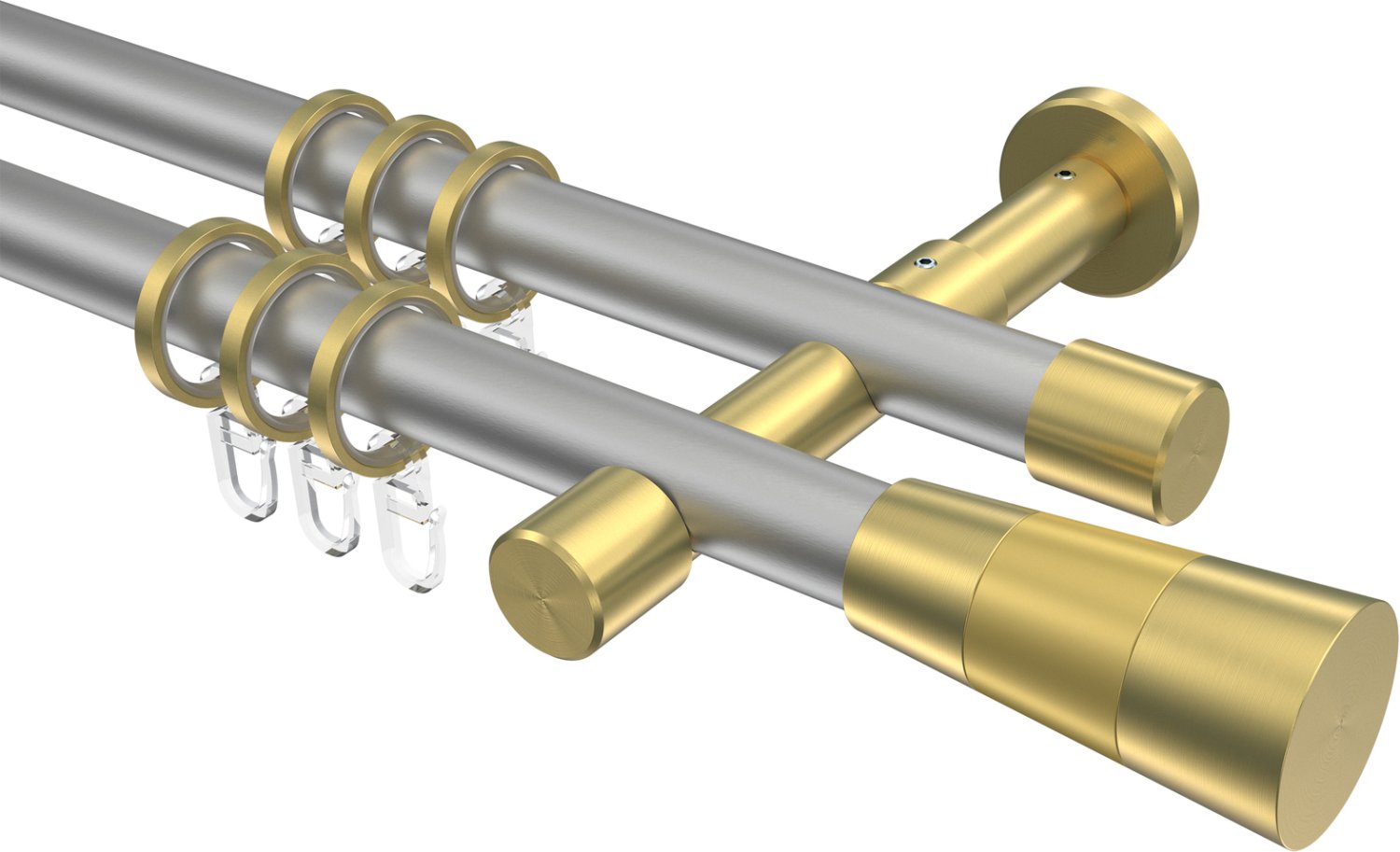 Informationen zu Gardinenstange Metall 20 mm Ø 2-läufig PRESTIGE - Tanara Silbergrau / Messing-Optik: