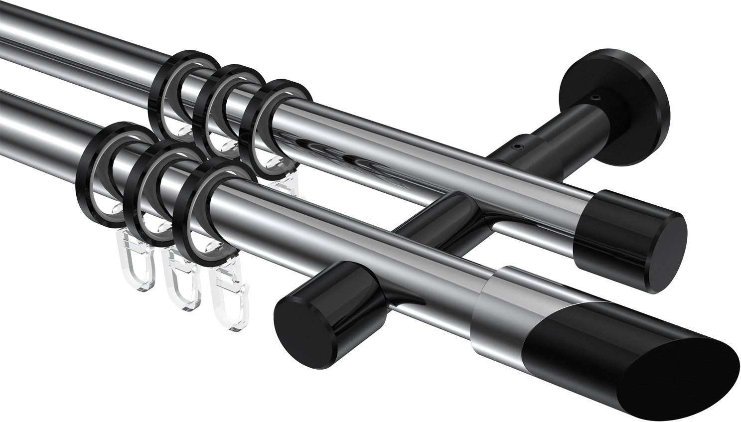 Gardinenstangen aus Metall in 20 mm Ø, 2-läufig, Modell PRESTIGE - Verano Chrom / Schwarz