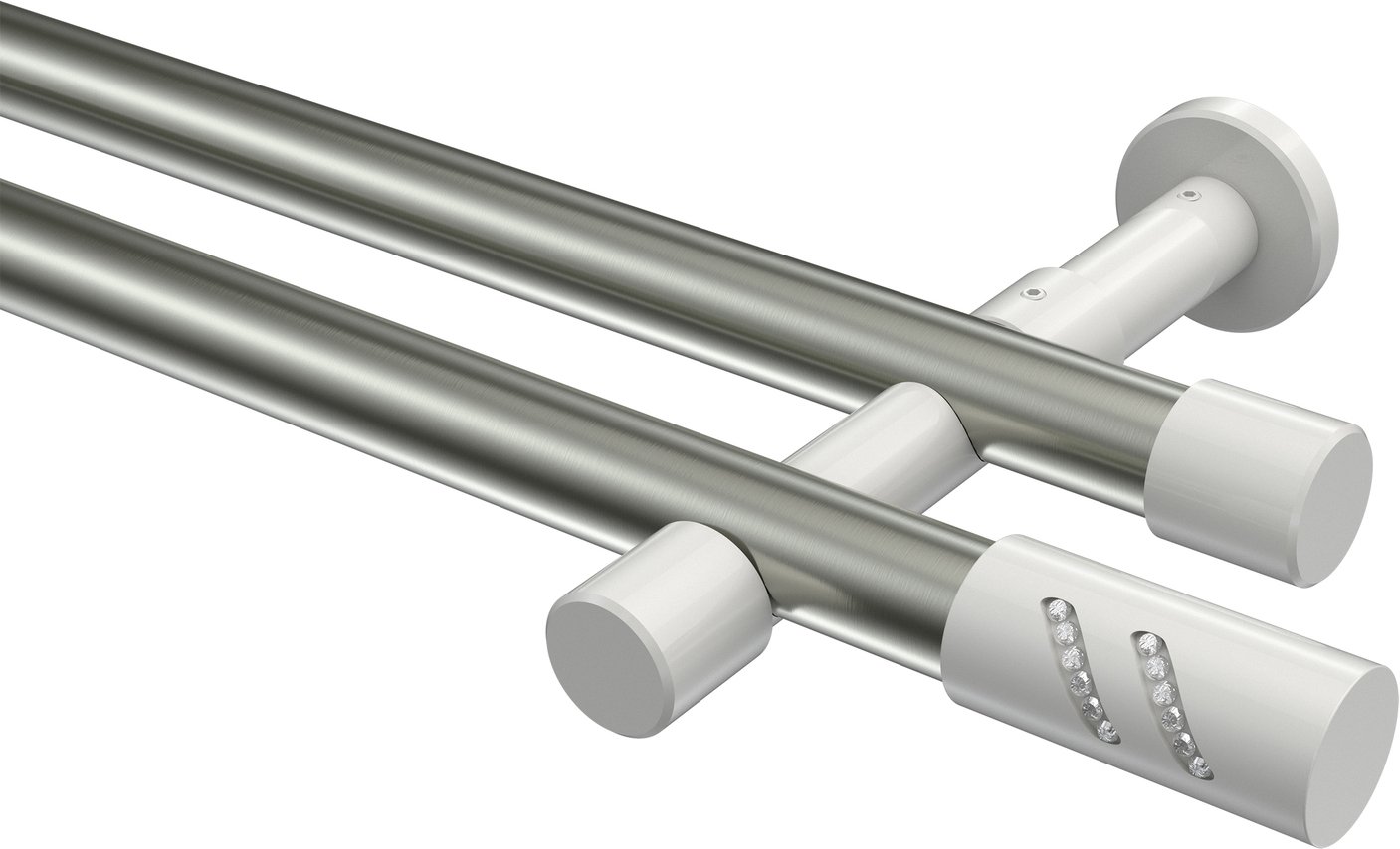 Informationen zu Gardinenstange Metall 20 mm Ø 2-läufig PRESTIGE - Zoena Edelstahl-Optik / Weiß (ohne Ringe):