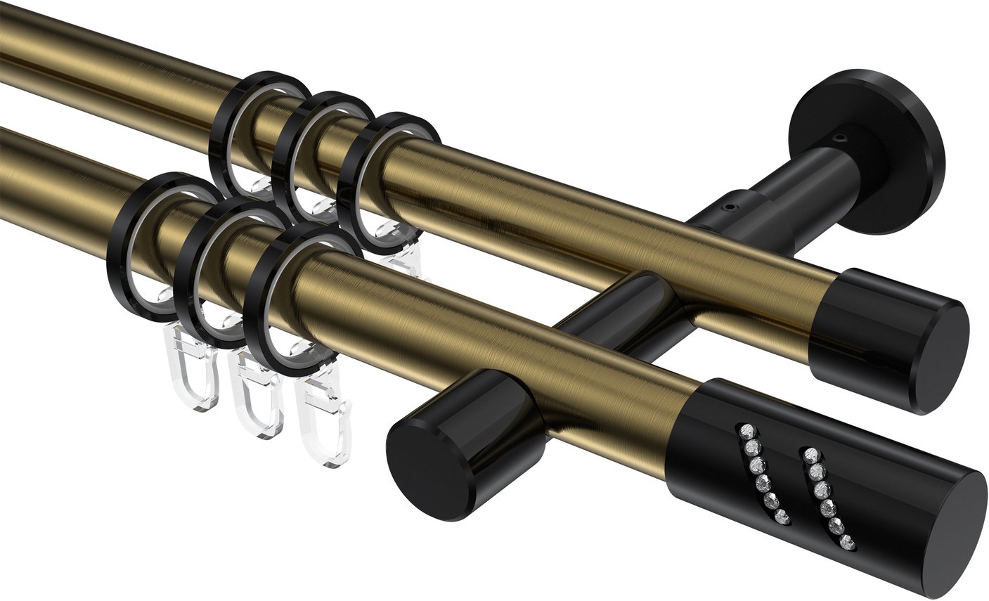Informationen zu Gardinenstange Metall 20 mm Ø 2-läufig PRESTIGE - Zoena Messing Antik / Schwarz: