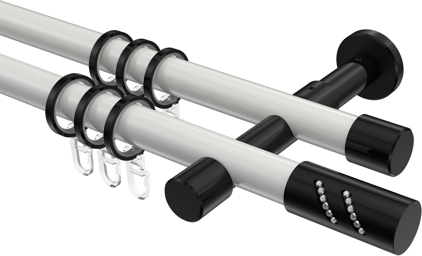 Gardinenstangen aus Metall in 20 mm Ø, 2-läufig, Modell PRESTIGE - Zoena Weiß / Schwarz