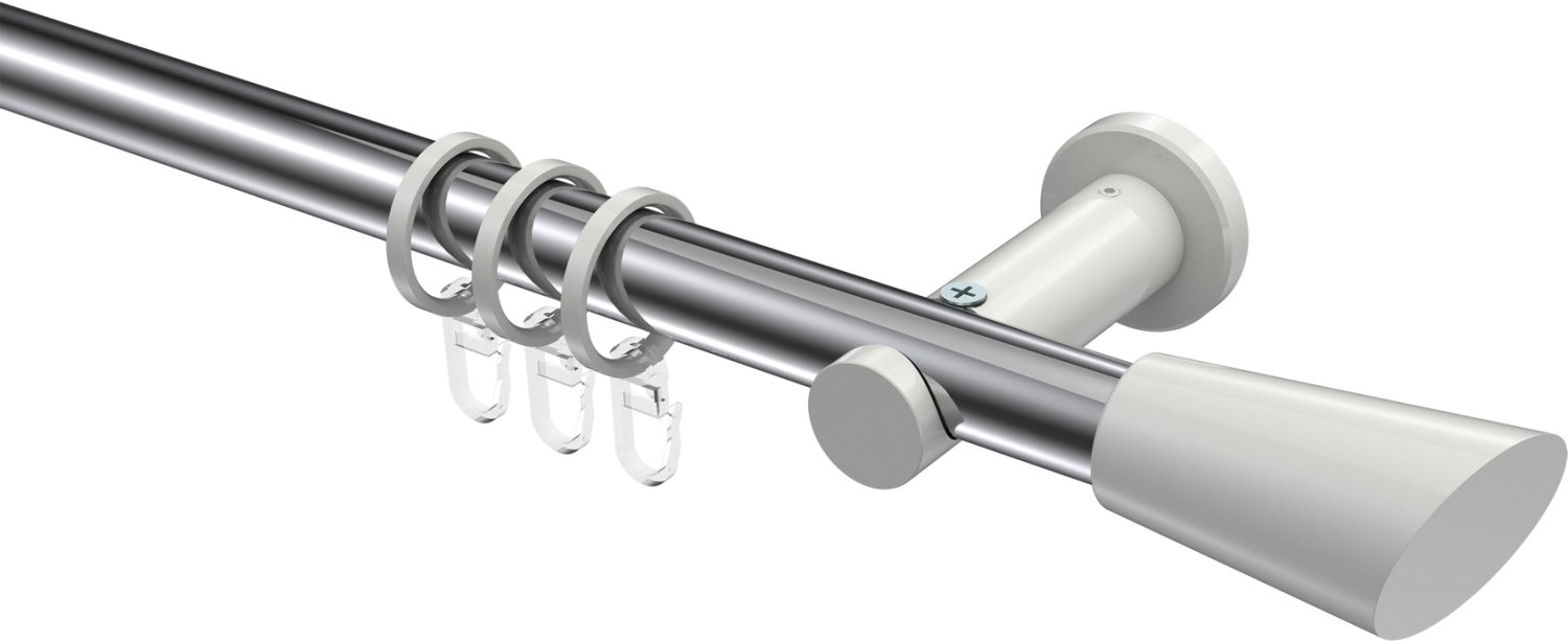 Gardinenstangen aus Metall in 20 mm Ø, 1-läufig, Modell PLATON - Bento Chrom / Weiß