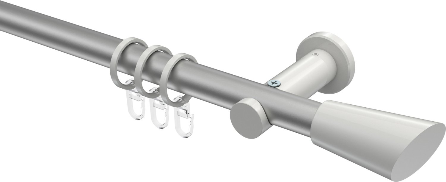 Gardinenstangen aus Metall in 20 mm Ø, 1-läufig, Modell PLATON - Bento Silbergrau / Weiß