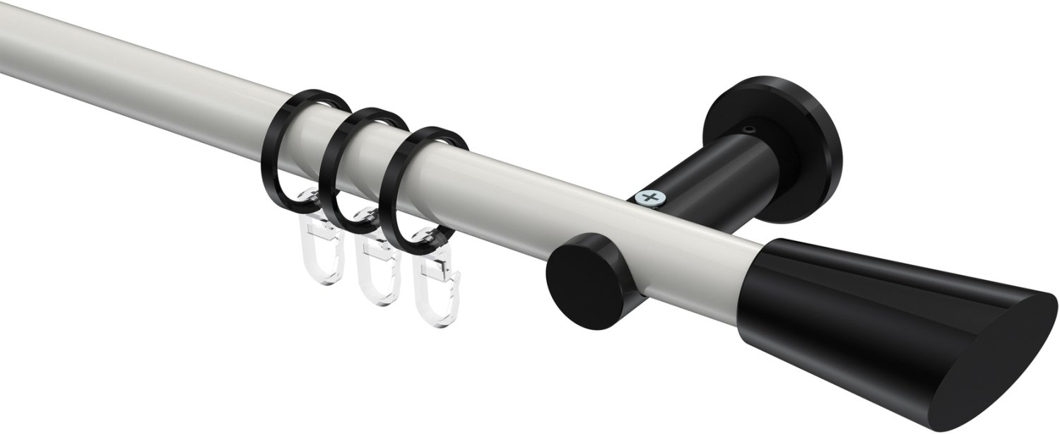 Gardinenstangen aus Metall in 20 mm Ø, 1-läufig, Modell PLATON - Bento Weiß / Schwarz