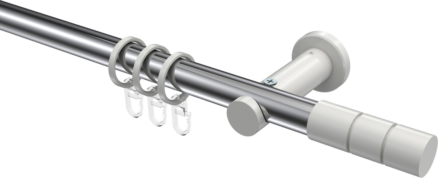 Gardinenstangen aus Metall in 20 mm Ø, 1-läufig, Modell PLATON - Elanto Chrom / Weiß
