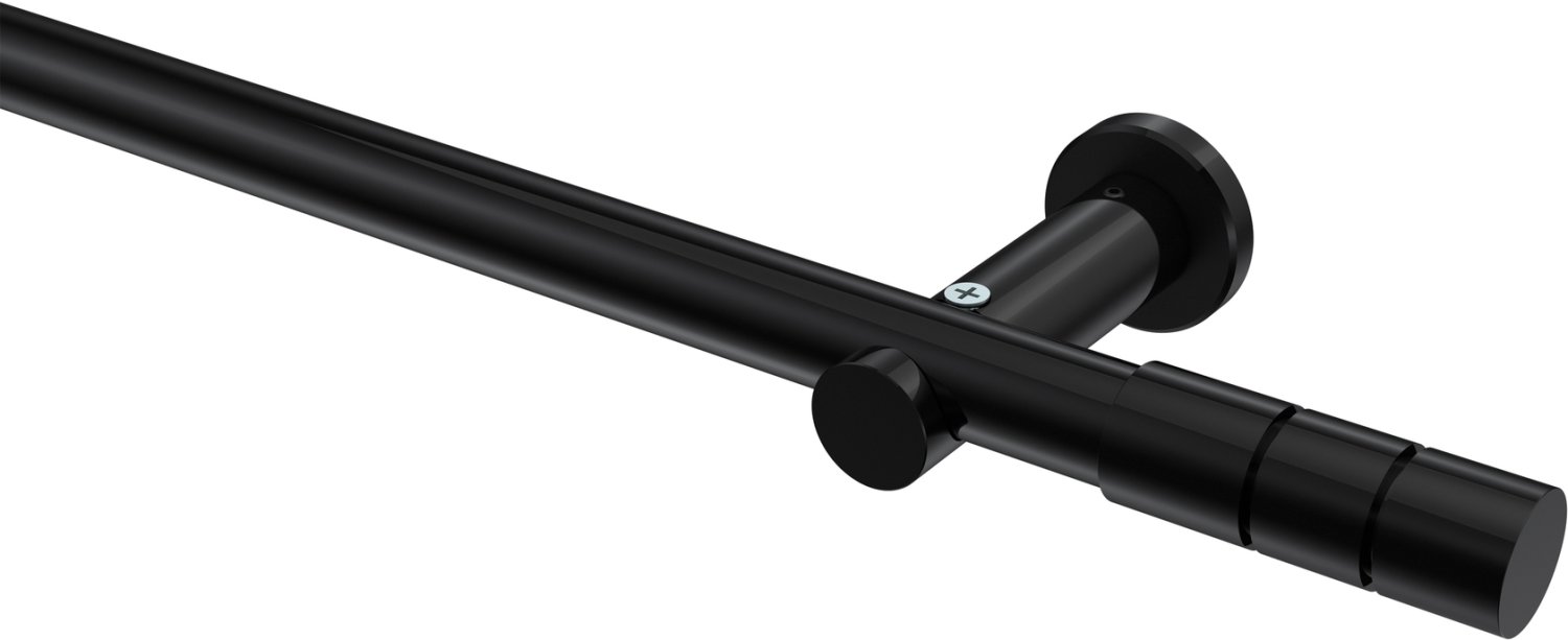 Gardinenstangen aus Metall in 20 mm Ø, 1-läufig, Modell PLATON - Elanto Schwarz (ohne Ringe)