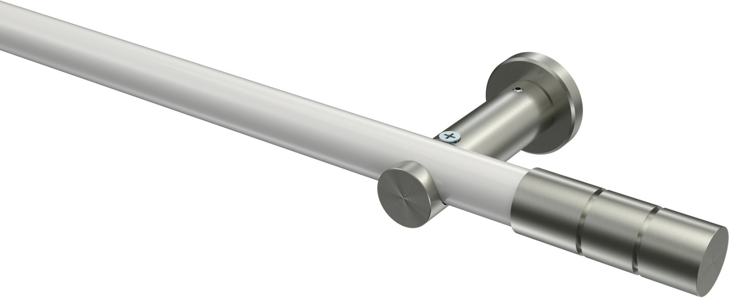Gardinenstangen aus Metall in 20 mm Ø, 1-läufig, Modell PLATON - Elanto Weiß / Edelstahl-Optik (ohne Ringe)