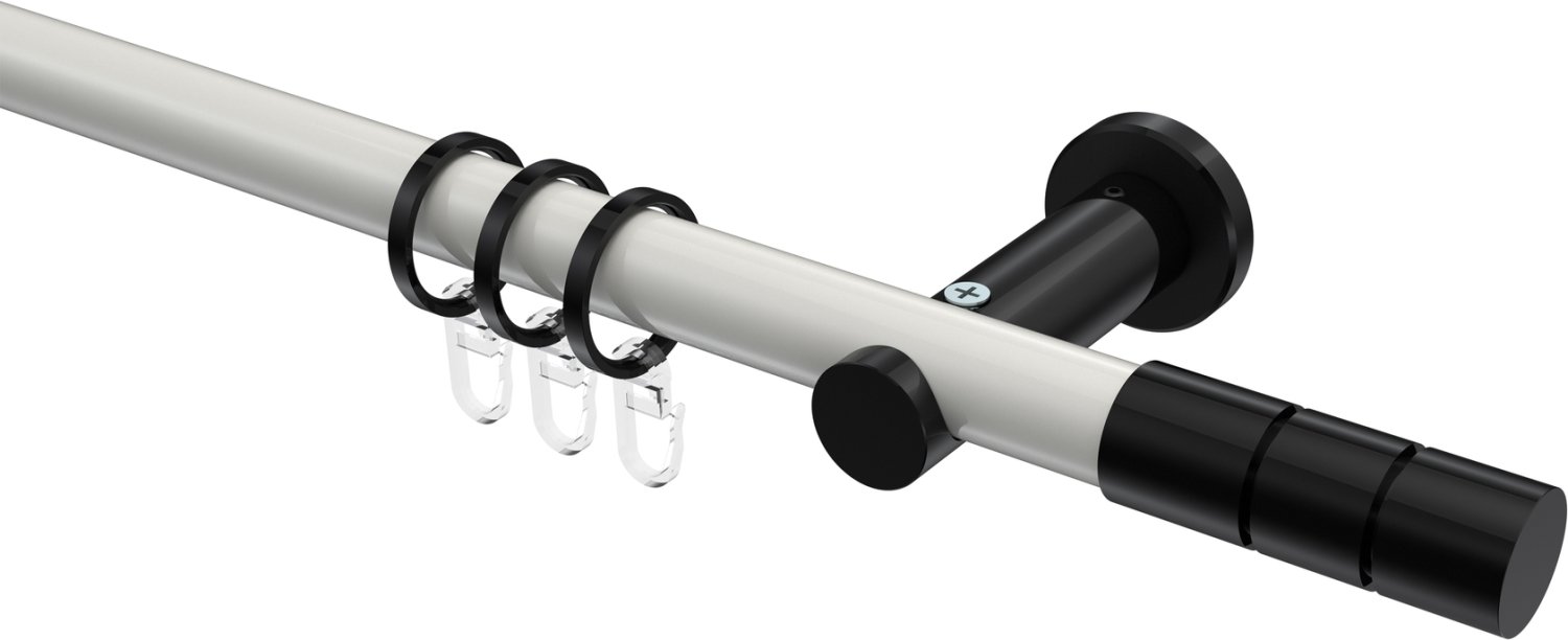 Gardinenstangen aus Metall in 20 mm Ø, 1-läufig, Modell PLATON - Elanto Weiß / Schwarz