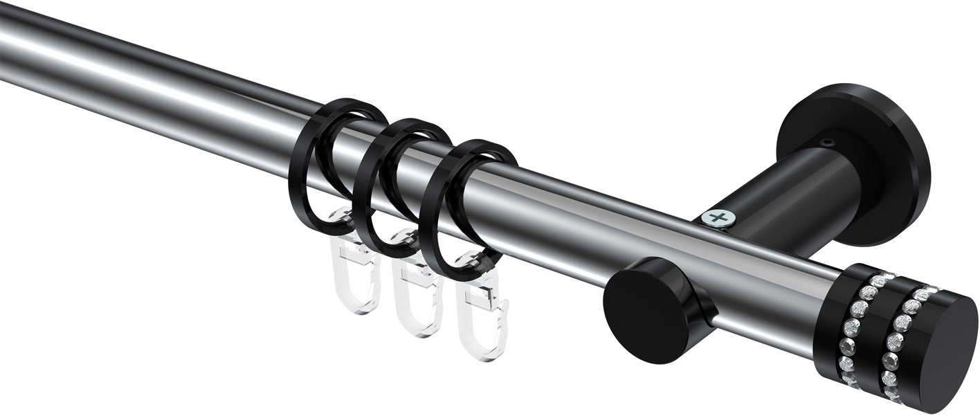 Gardinenstangen aus Metall in 20 mm Ø, 1-läufig, Modell PLATON - Estana Chrom / Schwarz
