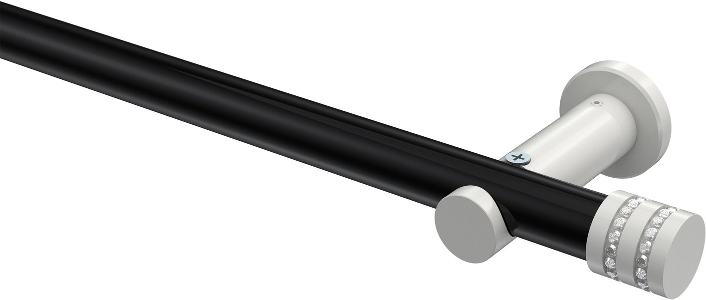 Gardinenstangen aus Metall in 20 mm Ø, 1-läufig, Modell PLATON - Estana Schwarz / Weiß (ohne Ringe)