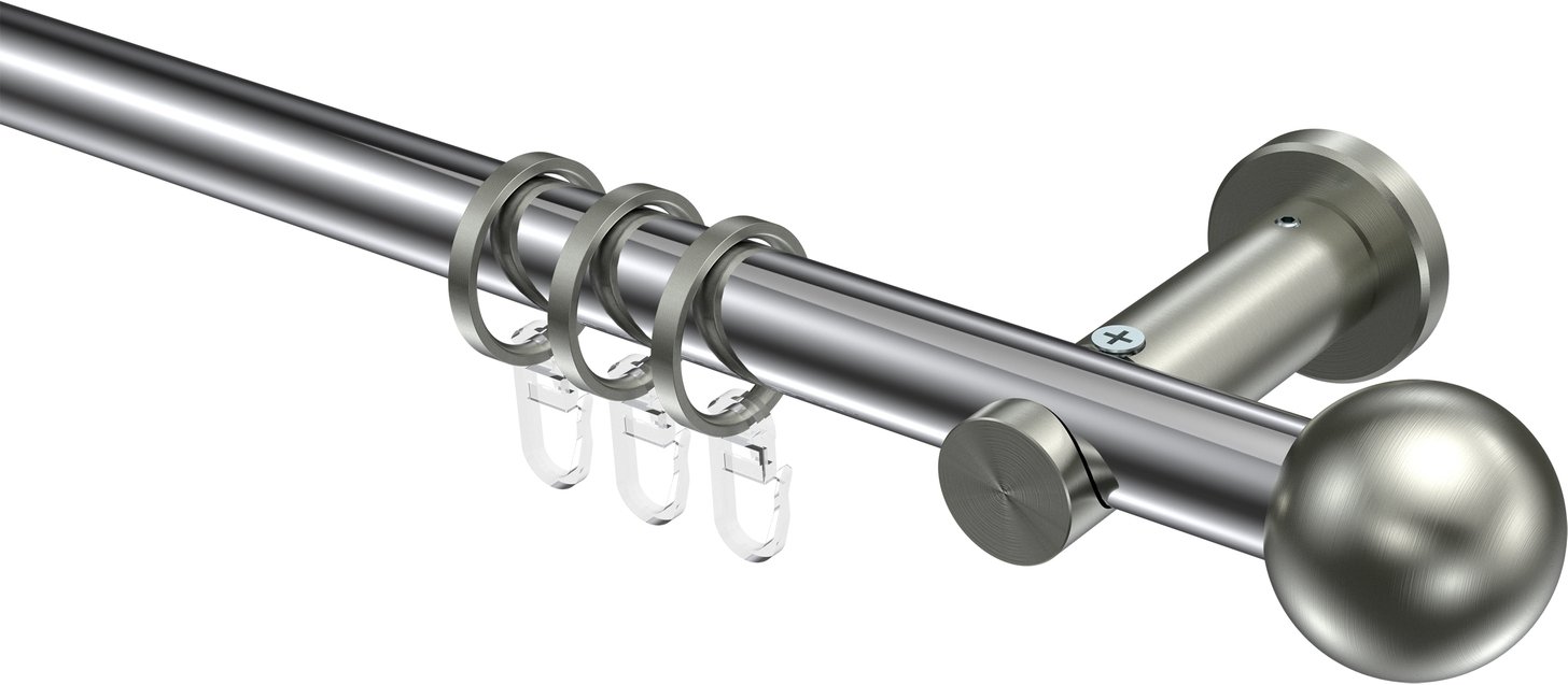 Gardinenstangen aus Metall in 20 mm Ø, 1-läufig, Modell PLATON - Luino Chrom / Edelstahl-Optik