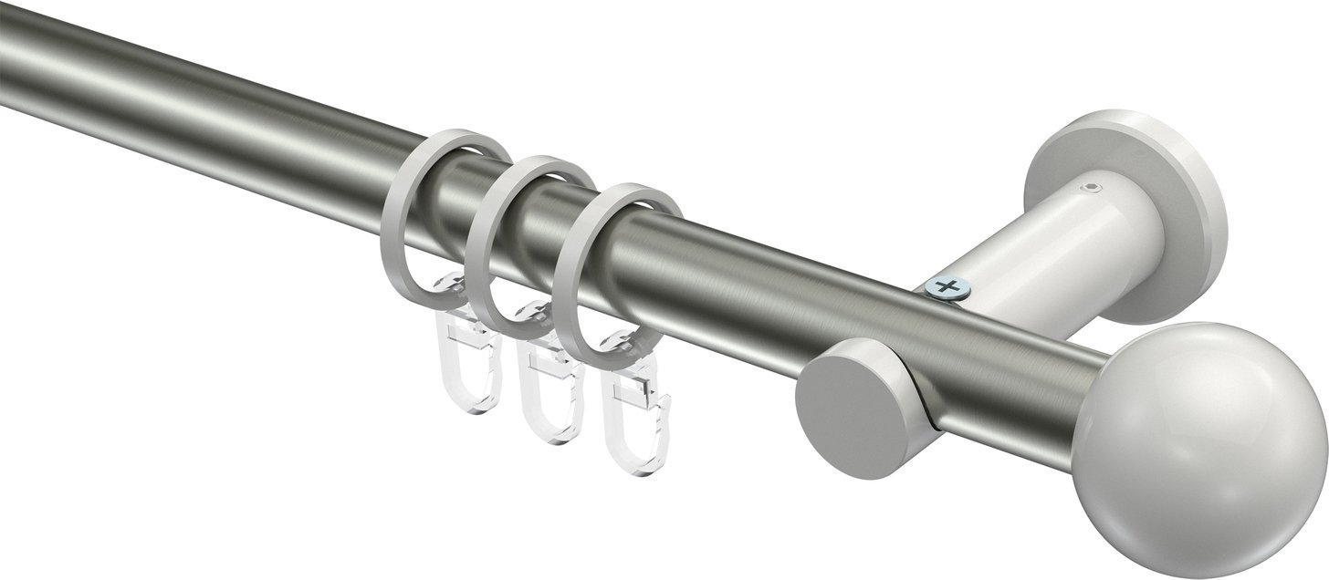 Gardinenstangen aus Metall in 20 mm Ø, 1-läufig, Modell PLATON - Luino Edelstahl-Optik / Weiß