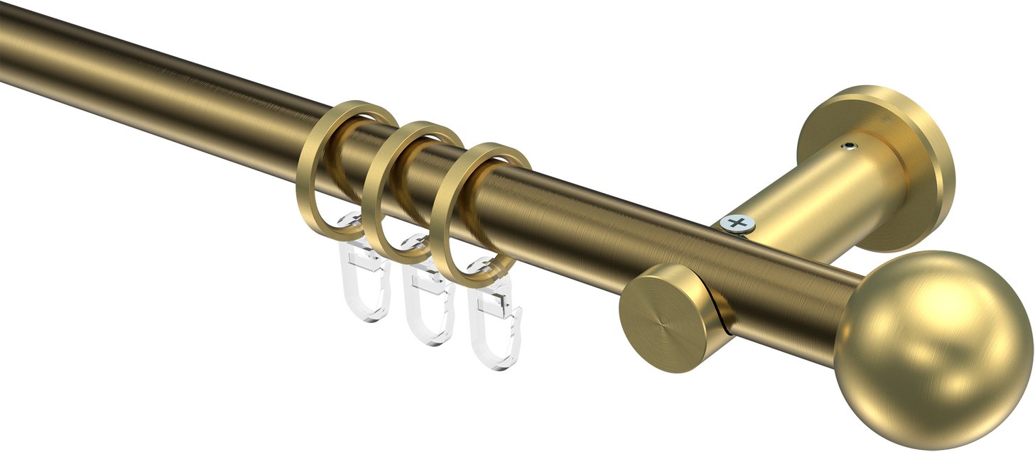 Gardinenstangen aus Metall in 20 mm Ø, 1-läufig, Modell PLATON - Luino Messing Antik / Messing-Optik