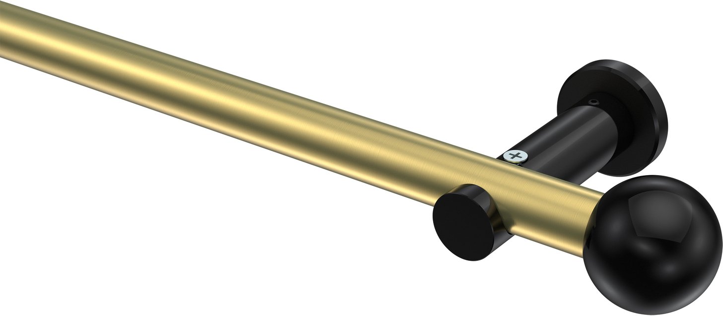 Gardinenstangen aus Metall in 20 mm Ø, 1-läufig, Modell PLATON - Luino Messing-Optik / Schwarz (ohne Ringe)