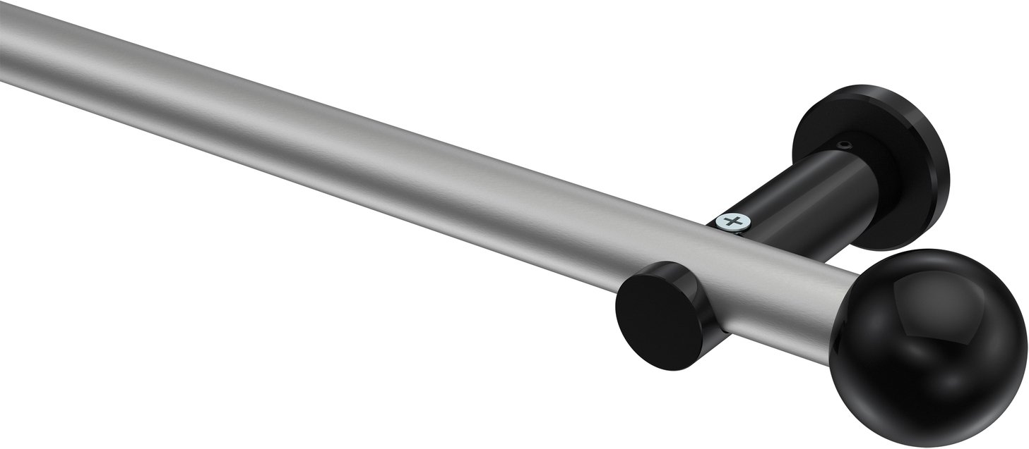 Gardinenstangen aus Metall in 20 mm Ø, 1-läufig, Modell PLATON - Luino Silbergrau / Schwarz (ohne Ringe)