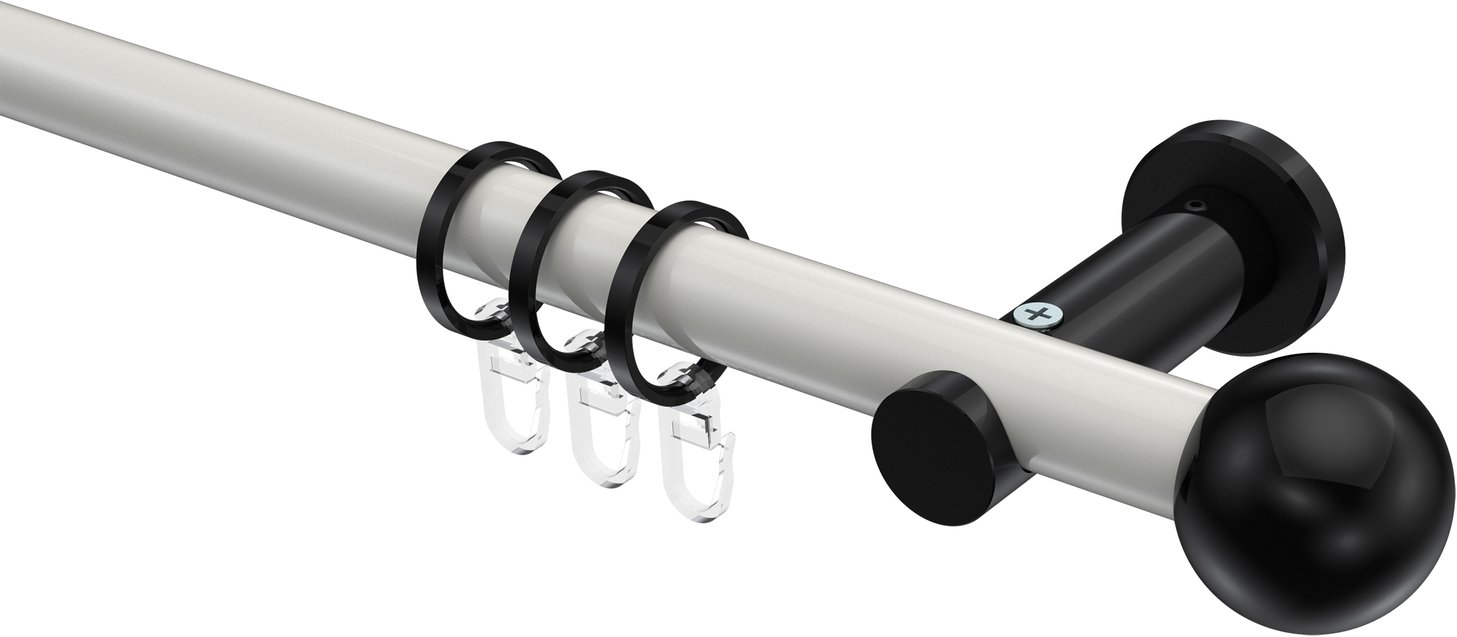 Gardinenstangen aus Metall in 20 mm Ø, 1-läufig, Modell PLATON - Luino Weiß / Schwarz